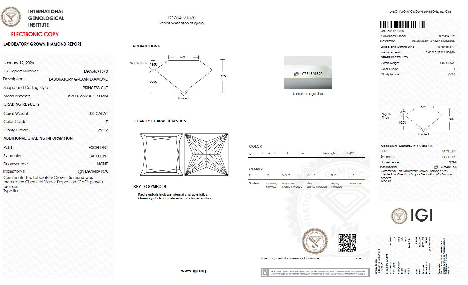 Exceptional 1.00 carat Princess cut lab-grown diamond with outstanding brilliance and fire. This ethically sourced, IGI certified CVD diamond combines modern technology with timeless elegance.