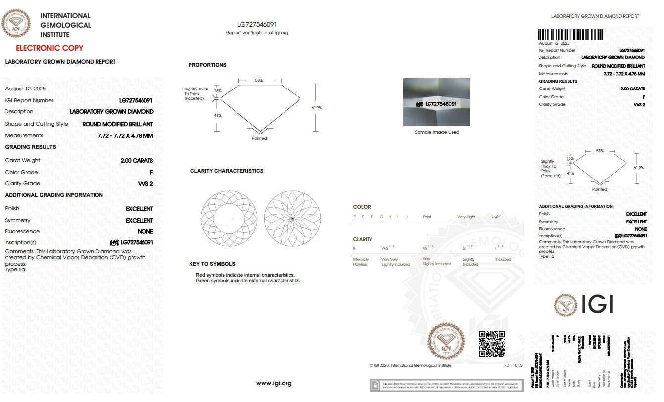 2.00 Carat Portuguese Lab Grown Diamond, VVS2/F