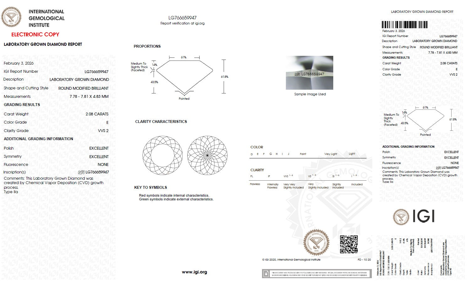 Exceptional 2.08 carat Portuguese cut lab-grown diamond with outstanding brilliance and fire. This ethically sourced, IGI certified CVD diamond combines modern technology with timeless elegance.