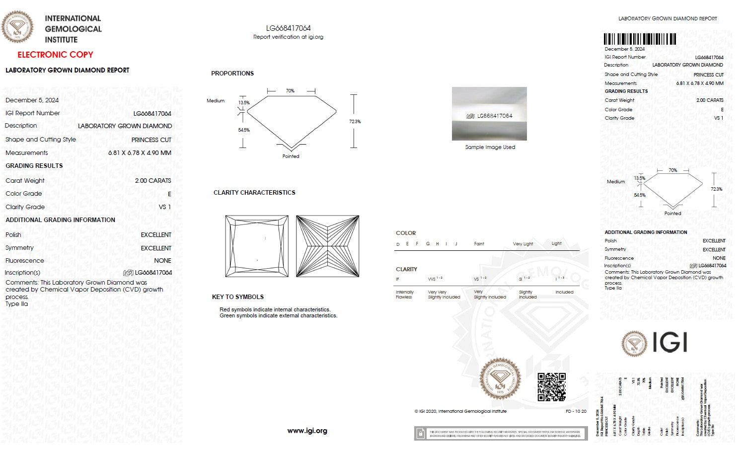 Exceptional 2.00 carat Princess cut lab-grown diamond with outstanding brilliance and fire. This ethically sourced, IGI certified CVD diamond combines modern technology with timeless elegance.