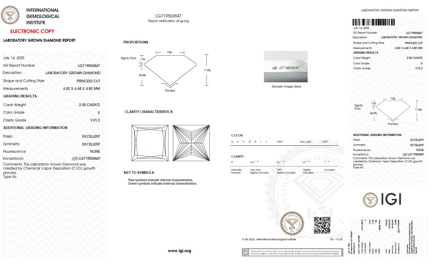 Exceptional 2.00 carat Princess cut lab-grown diamond with outstanding brilliance and fire. This ethically sourced, IGI certified CVD diamond combines modern technology with timeless elegance.