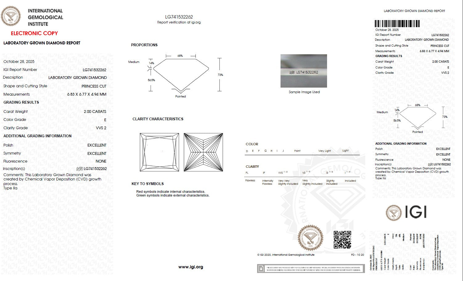 Exceptional 2.00 carat Princess cut lab-grown diamond with outstanding brilliance and fire. This ethically sourced, IGI certified CVD diamond combines modern technology with timeless elegance.