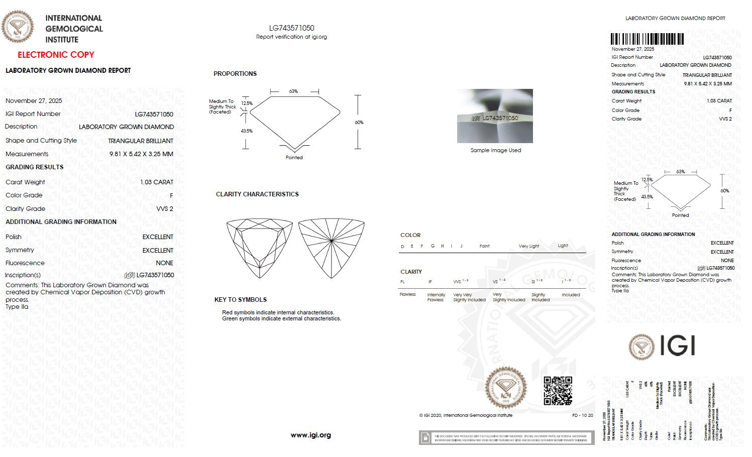 Exceptional 1.03 carat Trilliant cut lab-grown diamond with outstanding brilliance and fire. This ethically sourced, IGI certified CVD diamond combines modern technology with timeless elegance.