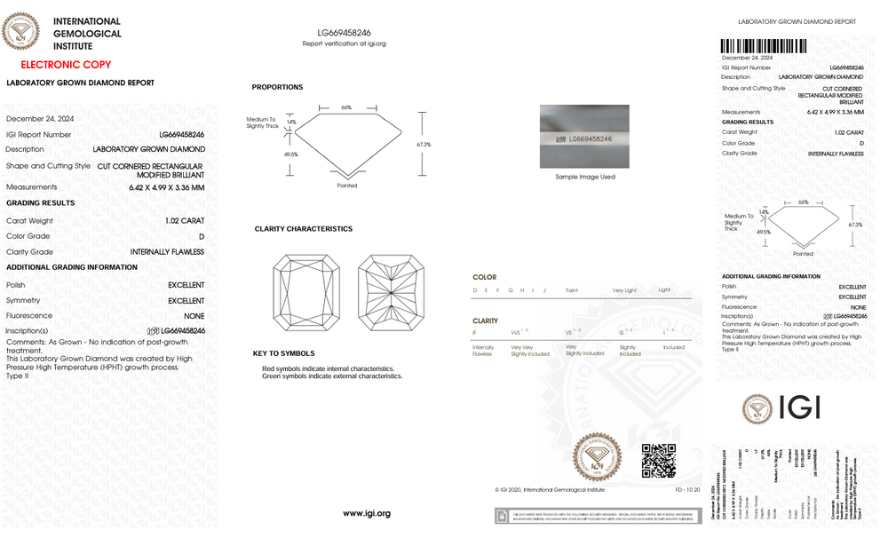 Denne IGI-certificerede lab-dyrkede diamant repræsenterer det højeste niveau af håndværk og etisk sourcing, hvilket gør det til et perfekt valg for dem, der kræver både skønhed og integritet.
