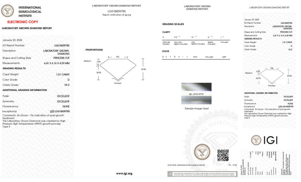 Entdecken Sie die Brillanz unseres IGI-zertifizierten 1,51-CT-Prinzessin-Cut-Labor-Diamanten, das mithilfe der fortschrittlichen HPHT-Technologie für außergewöhnliche Qualität und Funkeln sorgfältig gefertigt wurde.