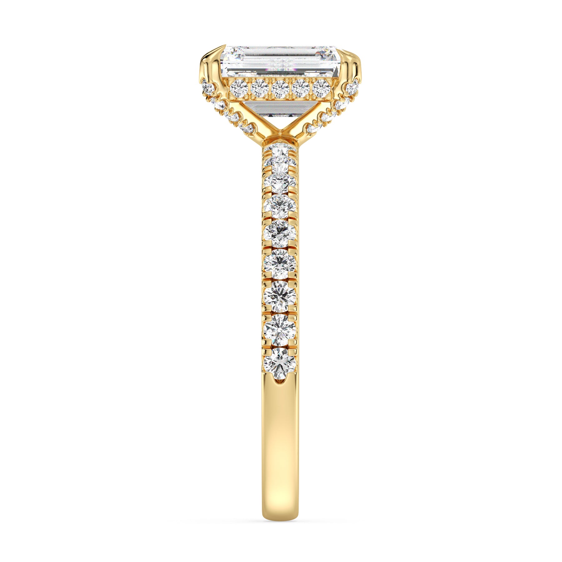 Radiate modern elegance with this exquisite lab-grown diamond engagement ring. It features a stunning 2.00ct Emerald-cut center stone, brilliantly accented with 50 sparkling diamonds and set in solid 18K gold—a true symbol of commitment and timeless luxury.