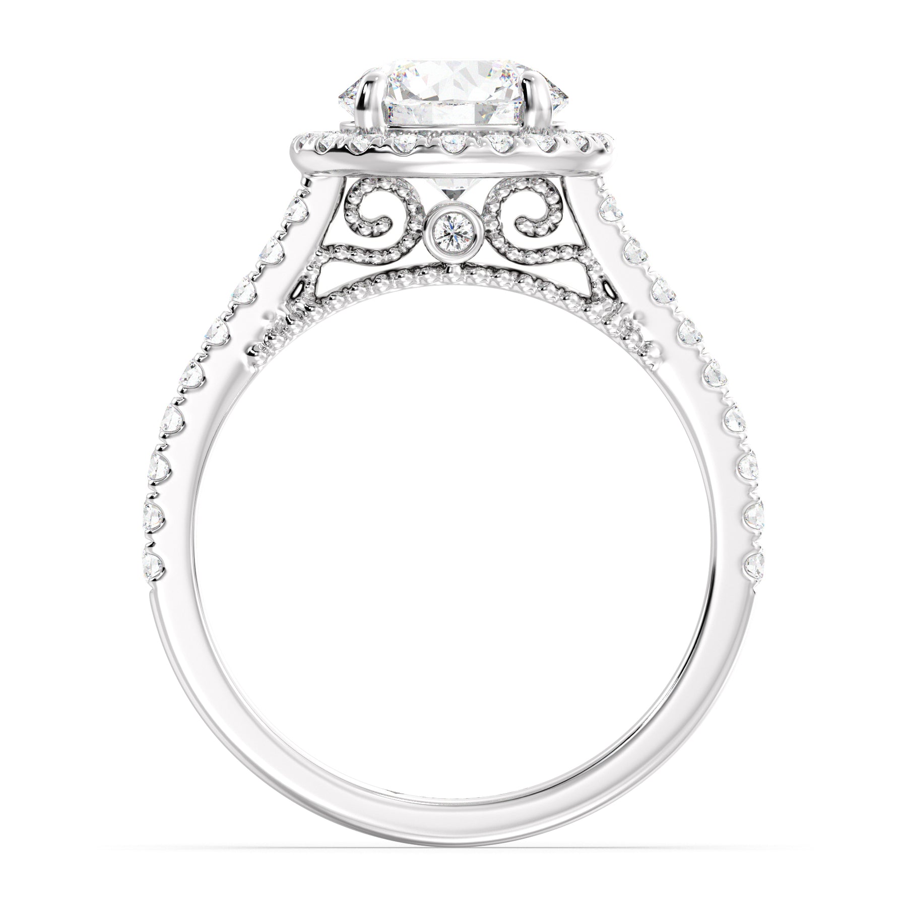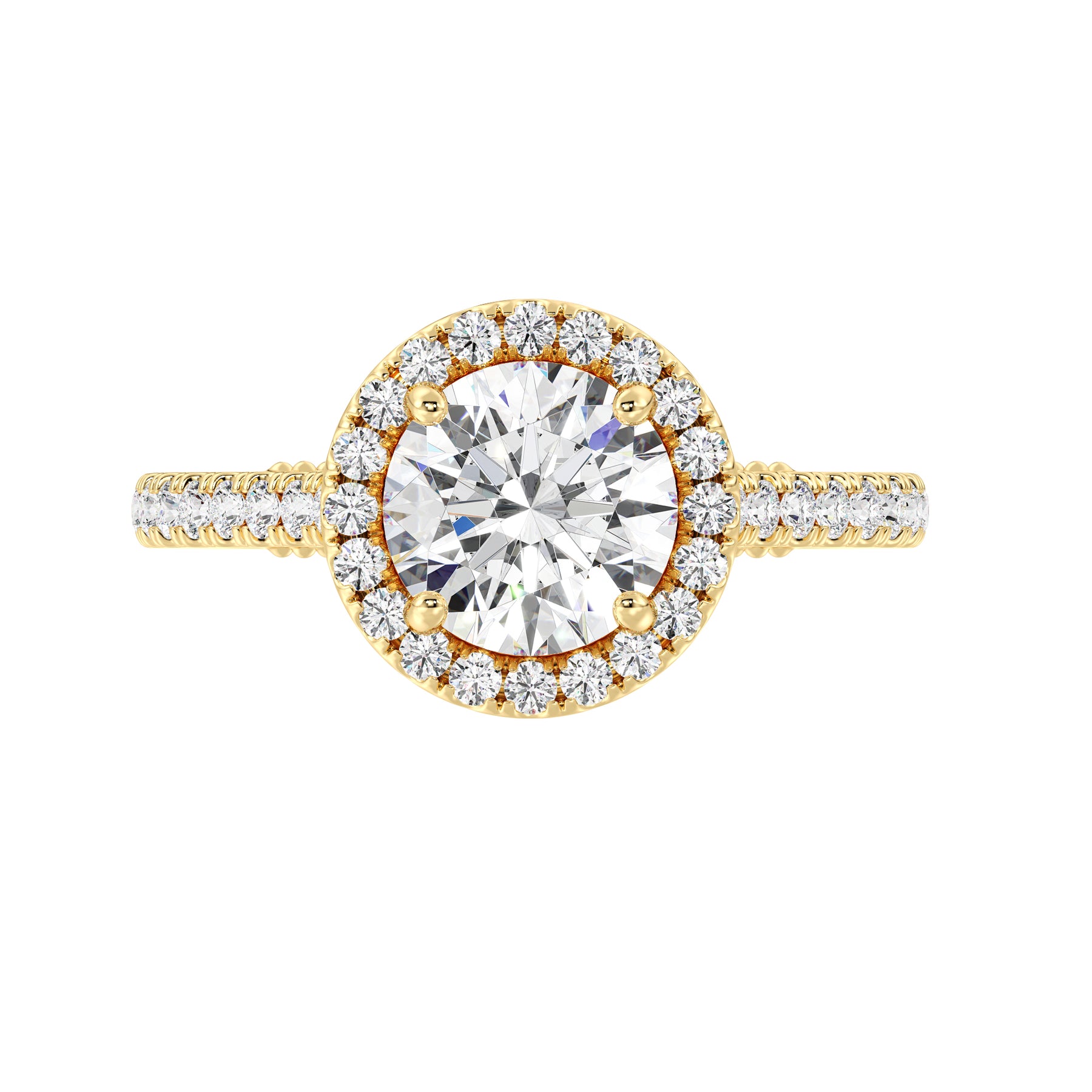 Make a statement with this 2.00ct Round-Cut Lab-Grown Diamond Ring, featuring a scalloped halo, pavé shank, and 40 accent diamonds (0.49ct). Expertly crafted in 18K yellow, white, or rose gold, it radiates timeless brilliance.