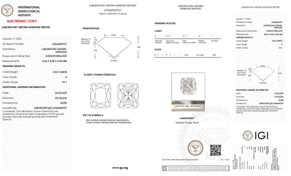 Elevate your jewelry collection with this stunning 3.02 carat cushion cut lab-grown diamond, perfect for engagement rings, necklaces, or custom jewelry designs. Embrace the beauty and sustainability of lab-grown diamonds without compromising on quality or style.