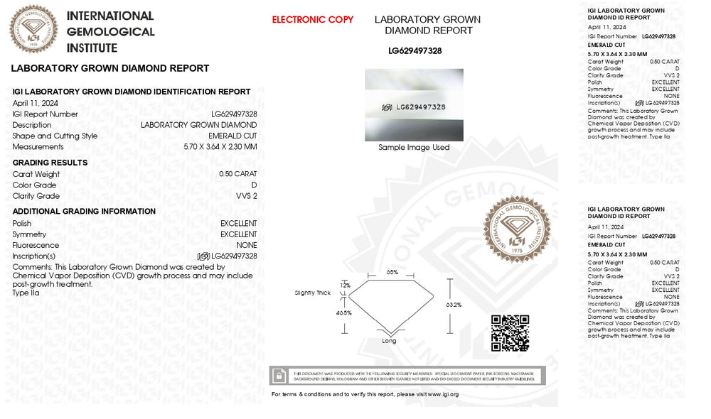 Elevate your jewelry collection with the timeless elegance of our IGI Certified 0.50 CT Emerald Cut Lab-Grown Diamond. Crafted with precision and ethically sourced, this diamond is a symbol of sophistication and luxury.