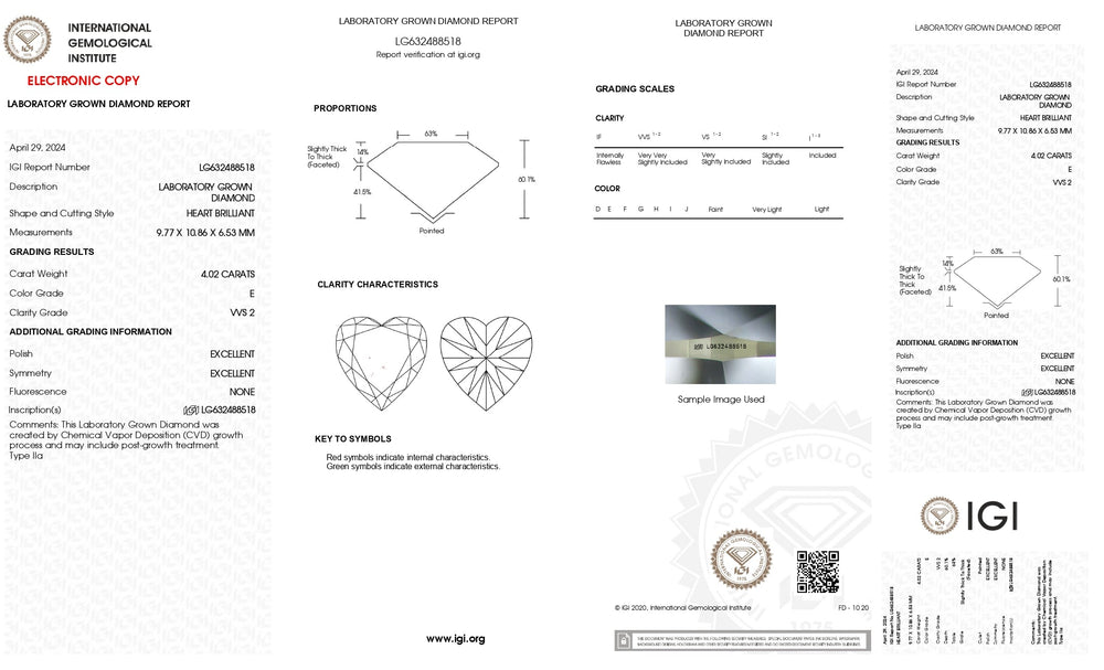 IGI Certified 4.02 CT Heart-Cut Lab-Grown Diamond - E Color, VVS2 Clarity