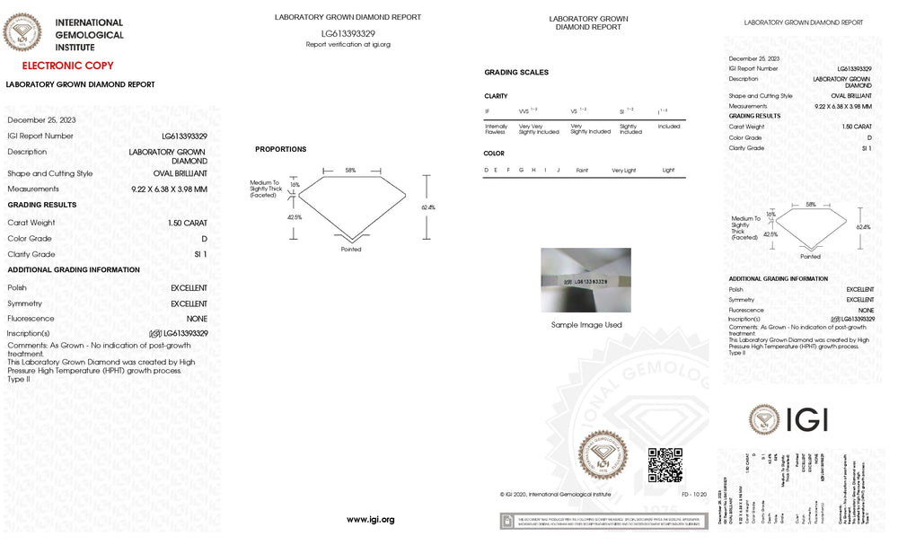 - Lab -sertifikaatti: Arvokkaan kansainvälisen gemologisen instituutin (IGI) todentama, joka takaa aitouden ja laadun.