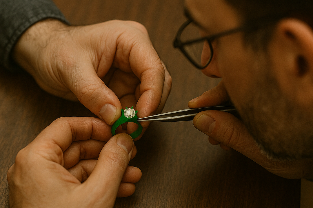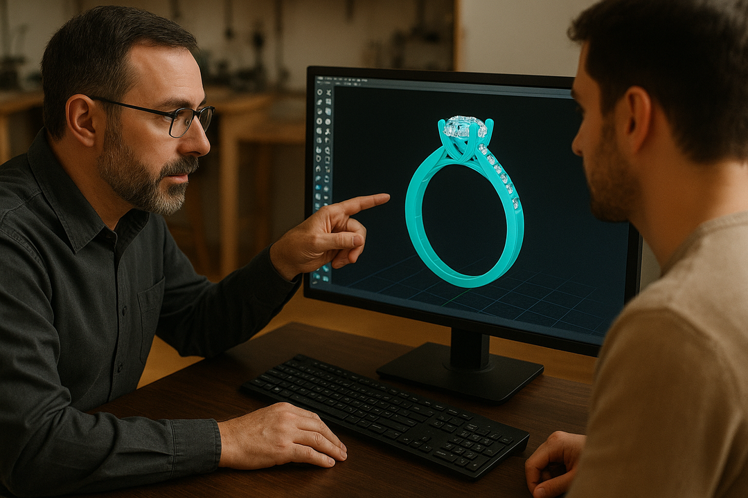 With your design finalized, we bring it to life through a precise 3D-printed or wax-carved prototype. This physical model allows us to evaluate every contour, proportion, and setting before crafting the final piece. It’s the stage where artistry meets engineering — ensuring your design is both beautiful and structurally perfect.