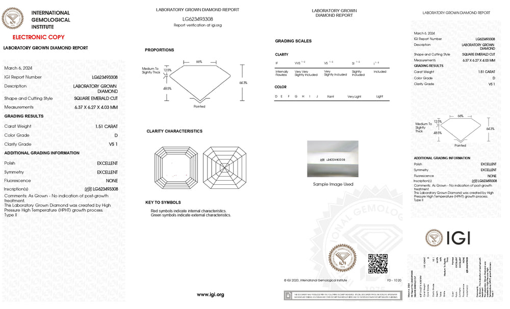 IGI Certified 1.51 CT Lab-Grown Square Emerald Cut Diamond