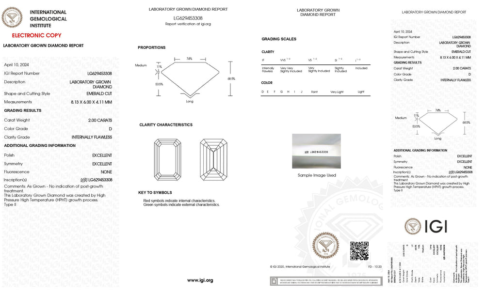 הרם את קולקציית התכשיטים שלך עם IGI המעודן שלנו מוסמך 2.00 CT אמרלד חתך ביהלום מגודלו במעבדה, ומציג איכות וטוהר יוצאי דופן.