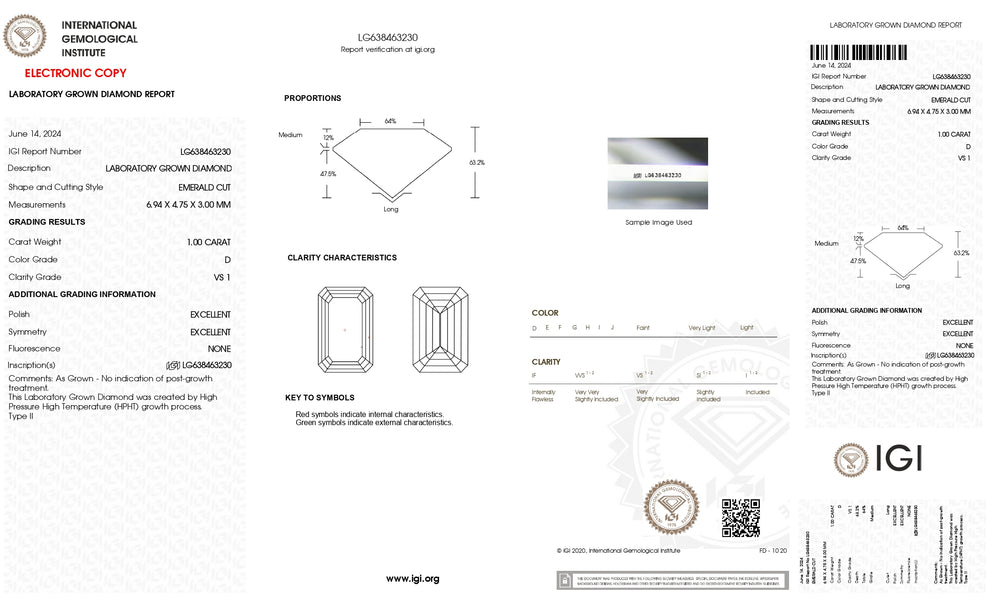 כל יהלום חתוך אמרלד באוסף שלנו הוא איגי מוסמך וגדל באמצעות טכנולוגיית CVD מתקדמת (תצהיר אדי כימי). יהלומים שגדלו במעבדה אלה זהים פיזית, כימית ואופטית ליהלומים ממוקשים-מפנים את אותה הבהירות, הברקה והעמידות תוך שהם נטולי סכסוך ומודעים לסביבה במאה אחוז. נקבע Bis Hallarked 18k זהב, כל יהלום חתוך אמרלד מעוצב בקפידה כדי להדגיש את הקצוות הפריכים שלו ואת הפרופורציות האלגנטיות שלו.