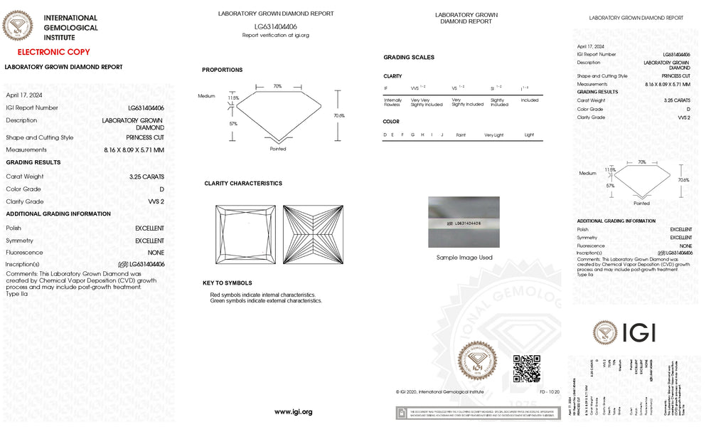 IGI Certified 3.25 CT Princess Cut Lab-Grown Diamond