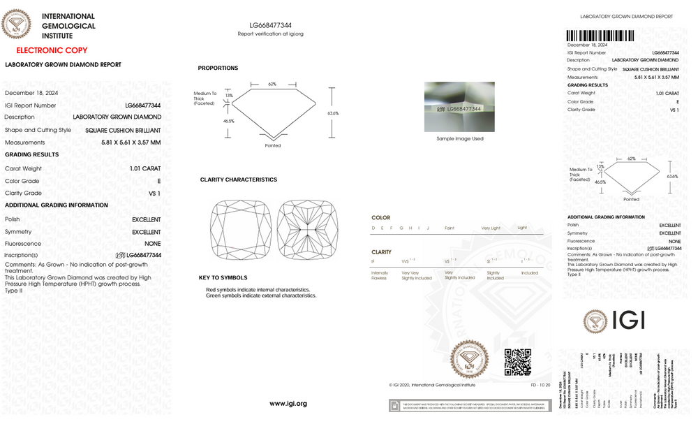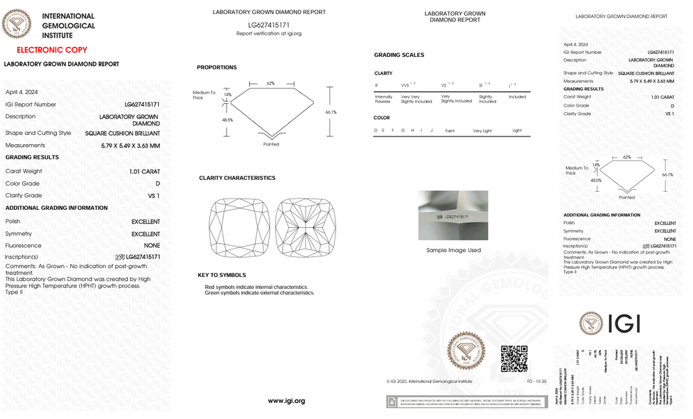 כל יהלום חתוך כרית באוסף שלנו הוא איגי מוסמך וגדל מעל פני האדמה באמצעות טכנולוגיית CVD מתקדמת (תצהיר אדי כימי). יהלומים שגדלו במעבדה אלה זהים כימית, פיזית, וזהה אופטית ליהלומים ממוקשים - מפנים הברקות, בהירות ועמידות יוצאת דופן ללא החששות האתיים או הסביבתיים. נקבע Bis Hallarked 18k זהב, מעבדת הכרית שלנו חתוכה ביהלומים שגדלו נחתכים במומחיות כדי לשפר את האש והנוצץ שלהם מכל זווית.
