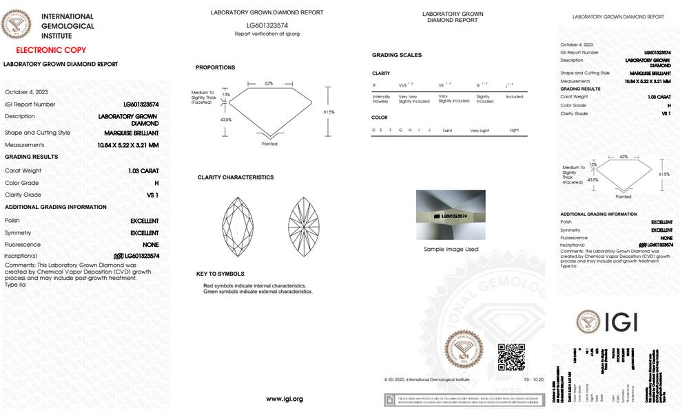 Manjakan diri dalam kecemerlangan berlian yang ditanam di laboratorium marquise IGI ini, simbol kecanggihan yang halus dan keahlian yang luar biasa.