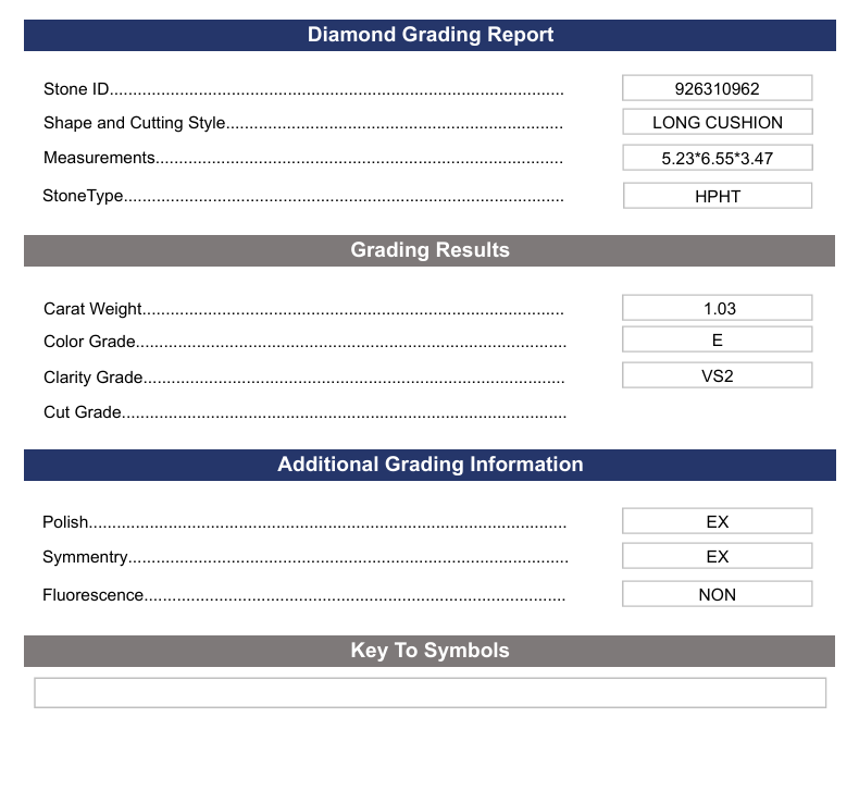 1.03 CT E Warna VS2 Long Cushion Cute Lab -Grown Diamond - Variasi Bersertifikat