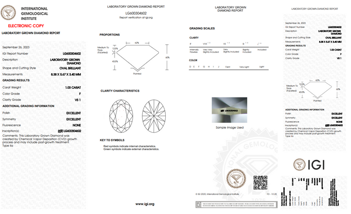 Memperkenalkan Berlian Laboratorium CVD Bersertifikat Bersertifikat IGI kami, pilihan luar biasa bagi mereka yang mencari kecemerlangan, kualitas, dan sumber etika. Berlian oval yang menakjubkan ini, dengan berat karat 1,03 ct, adalah bukti nyata kecanggihan dan gaya.