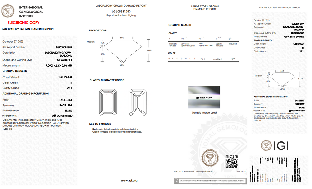 Tinggikan koleksi perhiasan Anda dengan berlian yang ditanam di laboratorium yang indah ini, disertifikasi oleh International Gemological Institute (IGI) yang bergengsi. Dibuat melalui proses CVD, berlian zamrud 1.04 karat ini menawarkan karakteristik luar biasa yang menjadikannya pilihan yang abadi dan elegan.