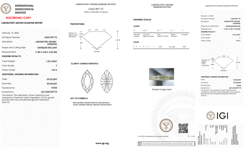Setiap berlian marquise dalam koleksi kami Bersertifikat IGI dan dibuat menggunakan teknologi CVD (Deposisi Uap Kimia) canggih. Berlian yang ditanam lab ini secara fisik, kimia, dan secara optik identik dengan berlian yang ditambang - menawarkan kecemerlangan dan kejelasan yang menakjubkan yang sama, tanpa kompromi etis atau lingkungan. Secara ahli mengatur Bis ciri khas 18k emas, setiap berlian yang dipotong marquise dipilih dengan tangan dan dipotong tepat untuk meningkatkan refleksi cahaya dan menampilkan siluetnya yang dramatis dan terinspirasi oleh vintage.