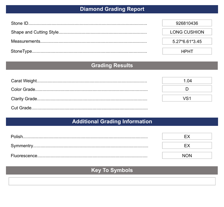 1,04 ct d kleur vs1 lange kussen gesneden lab gekweekte diamant - variatie gecertificeerd
