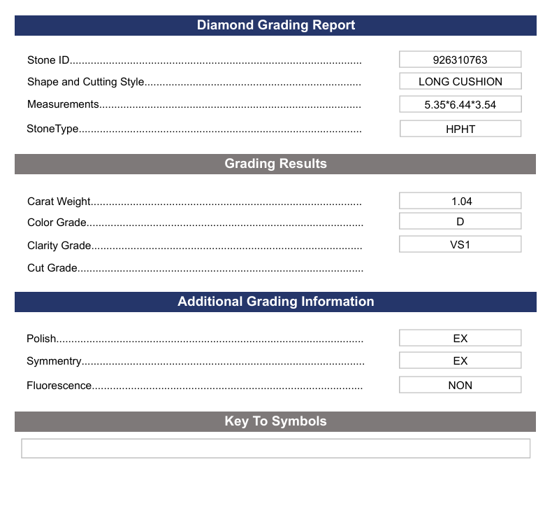 1,04 ct d kleur vs1 lange kussen gesneden lab gekweekte diamant - variatie gecertificeerd