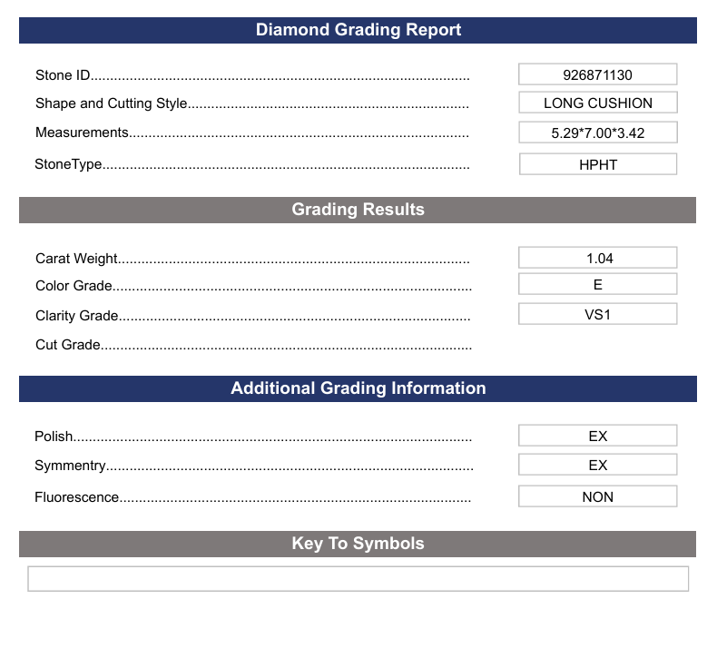 1,04 ct e kleur vs1 lange kussen gesneden lab gekweekte diamant - variatie gecertificeerd
