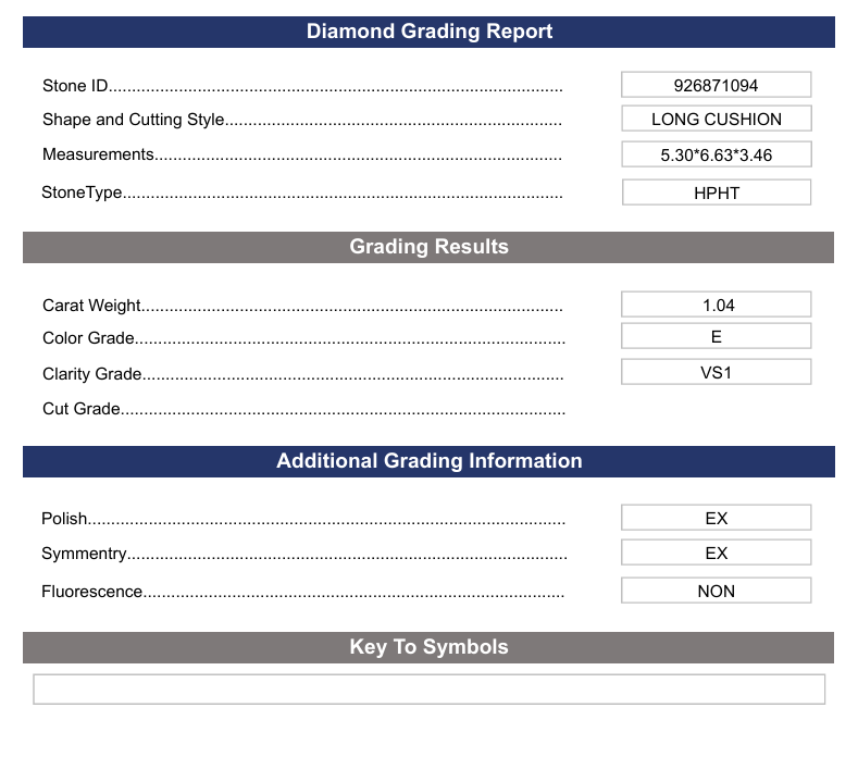 1,04 ct e kleur vs1 lange kussen gesneden lab gekweekte diamant - variatie gecertificeerd
