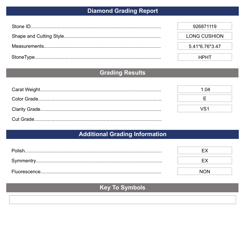 1,04 ct e kleur vs1 lange kussen gesneden lab gekweekte diamant - variatie gecertificeerd