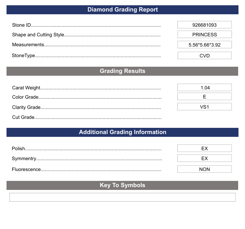 1.04 CT E kleur VS1 prinses gesneden lab gekweekte diamant - variatie gecertificeerd