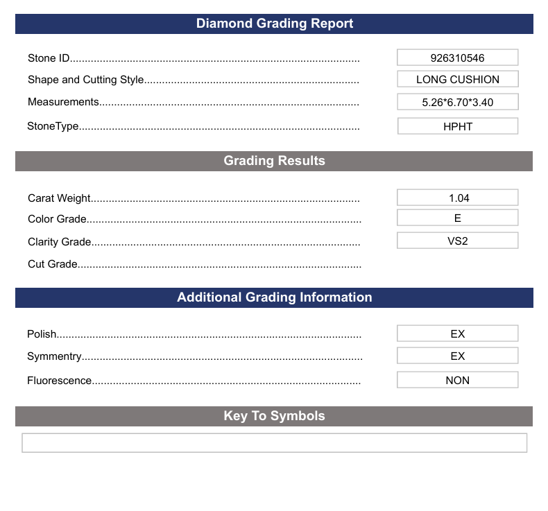 1,04 ct e kleur vs2 lange kussen gesneden lab gekweekte diamant - variatie gecertificeerd