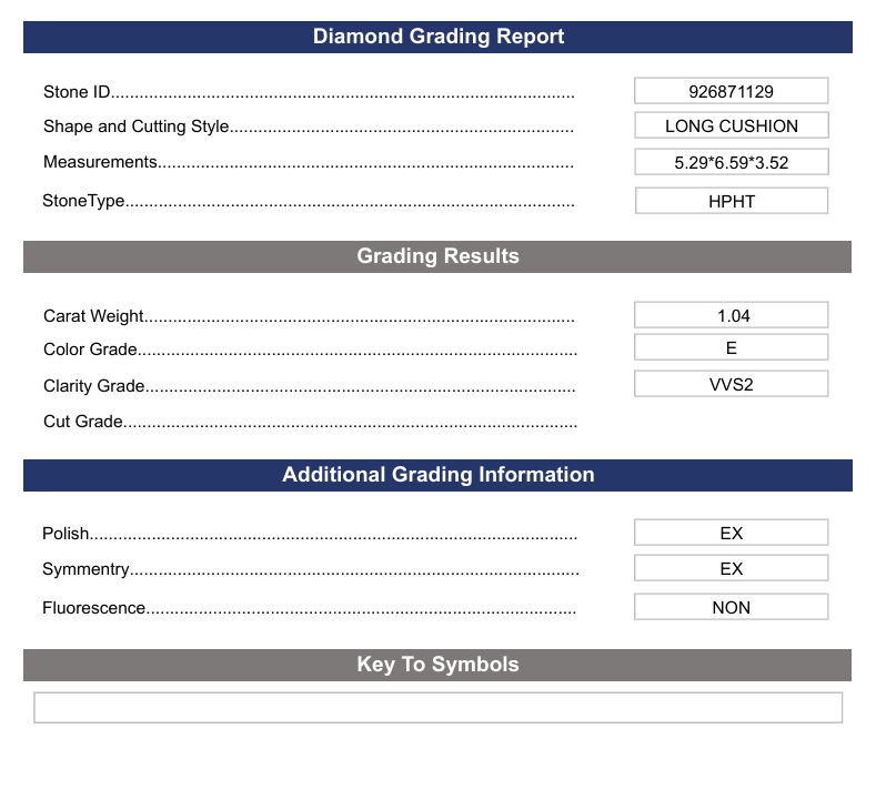 1,04 ct e kleur vvs2 lange kussen gesneden lab gekweekte diamant - variatie gecertificeerd