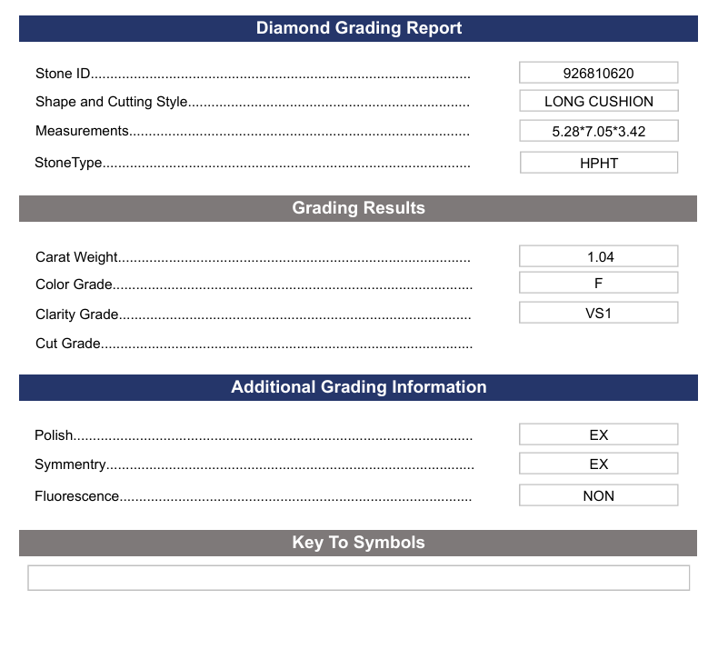 1,04 ct f kleur vs1 lange kussen gesneden lab gekweekte diamant - variatie gecertificeerd