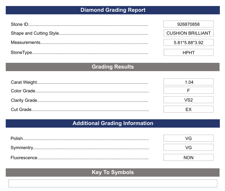 1,04 CT F kleur VS2 kussen briljant gesneden lab gekweekte diamant - variatie gecertificeerd