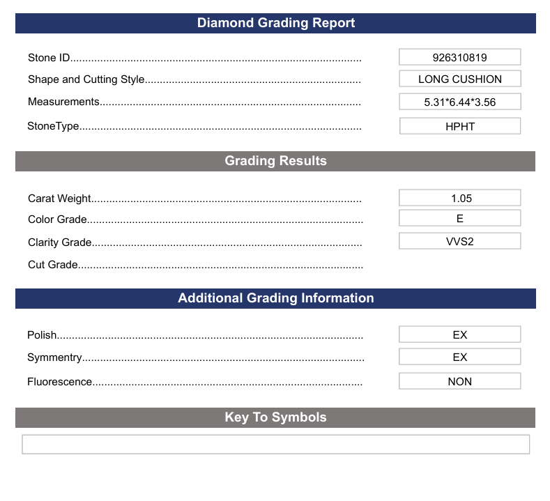 1,05 ct e kleur vvs2 lange kussen gesneden lab gekweekte diamant - variatie gecertificeerd