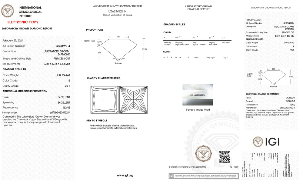 Verken de elegantie en schittering van onze IGI-gecertificeerde prinses gesneden lab gekweekte diamant, zorgvuldig vervaardigd met behulp van de CVD-methode. Deze prachtige diamant is ideaal voor het creëren van een luxueus en verfijnd sieradenstuk.