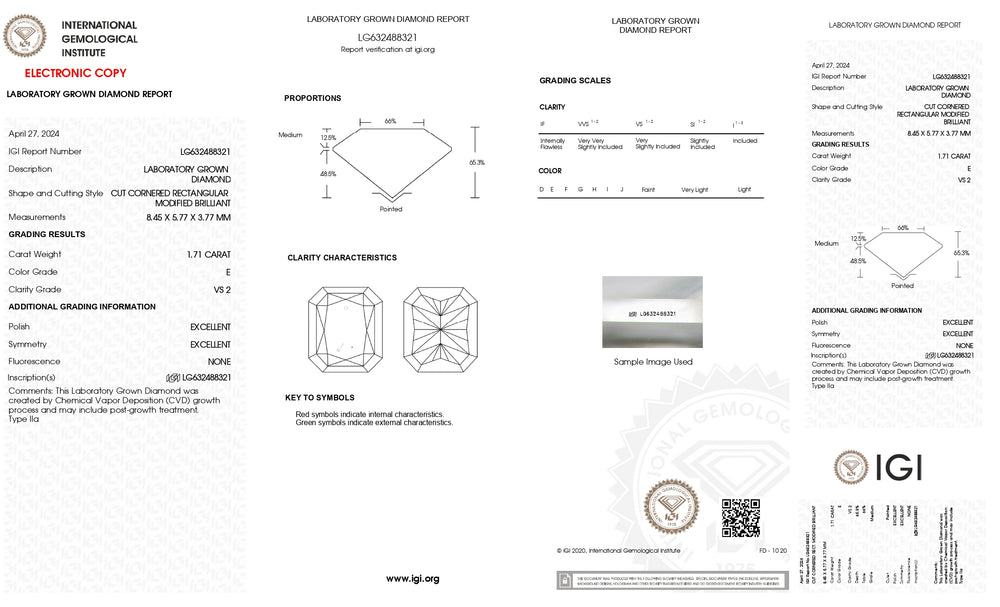 Geniet van de luxe en schittering van deze 1.71 karaat stralende lab gekweekte diamant, ethisch geproduceerd en tot in de perfectie vervaardigd. Of het nu gaat om een symbool van liefde of een verklaring van persoonlijke stijl, deze diamant zal boeien met zijn uitzonderlijke schoonheid en kwaliteit.