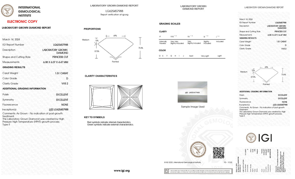 IGI Certified 1.51 CT Princess Cut Lab Grown Diamond - VVS2 D