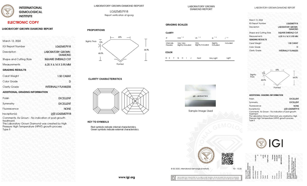 IGI -sertifisert 1,50 CT Square Emerald Cut Lab Grown Diamond - D Color, Internt feilfri