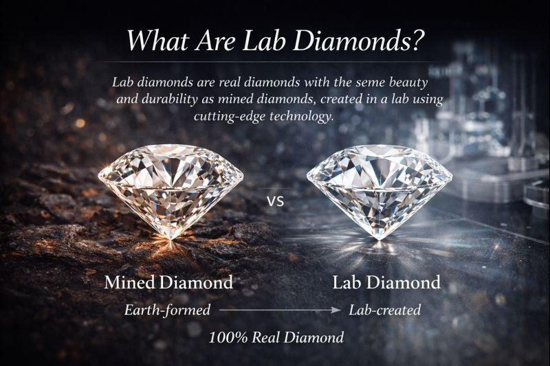 Lab diamonds, also known as lab grown diamonds, are real diamonds created using advanced technology that replicates the natural diamond-forming process. They share the same physical, chemical, and optical properties as mined diamonds—offering the same brilliance, fire, and durability.