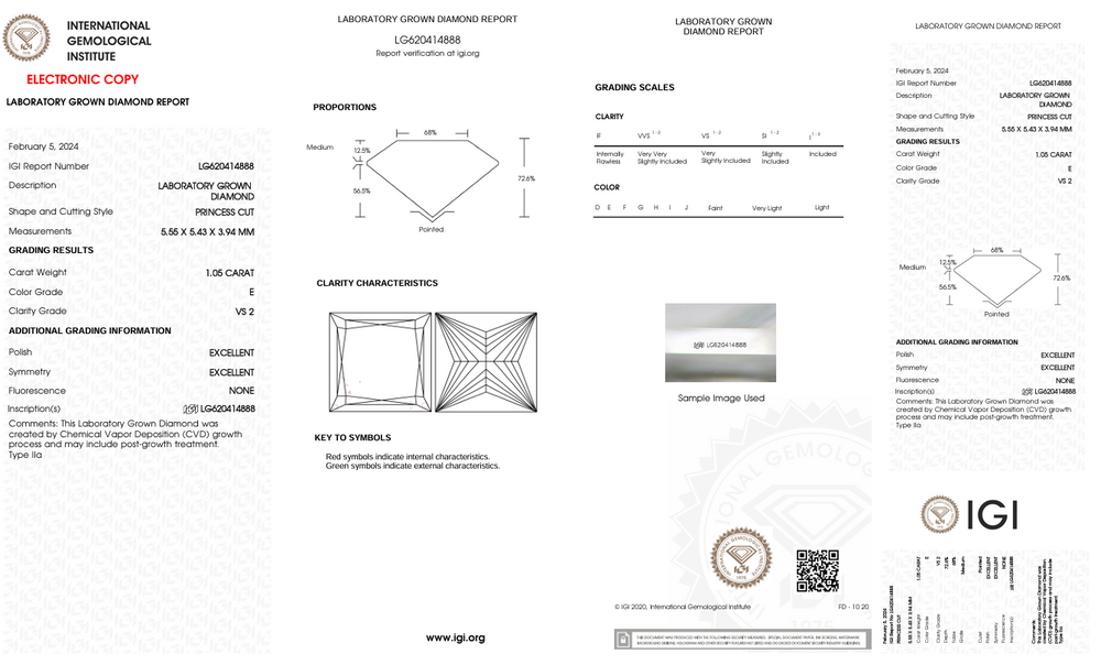 Este diamante cultivado em laboratório certificado pela IGI representa o mais alto nível de habilidade e fornecimento ético, tornando-o uma escolha perfeita para quem exige beleza e integridade.