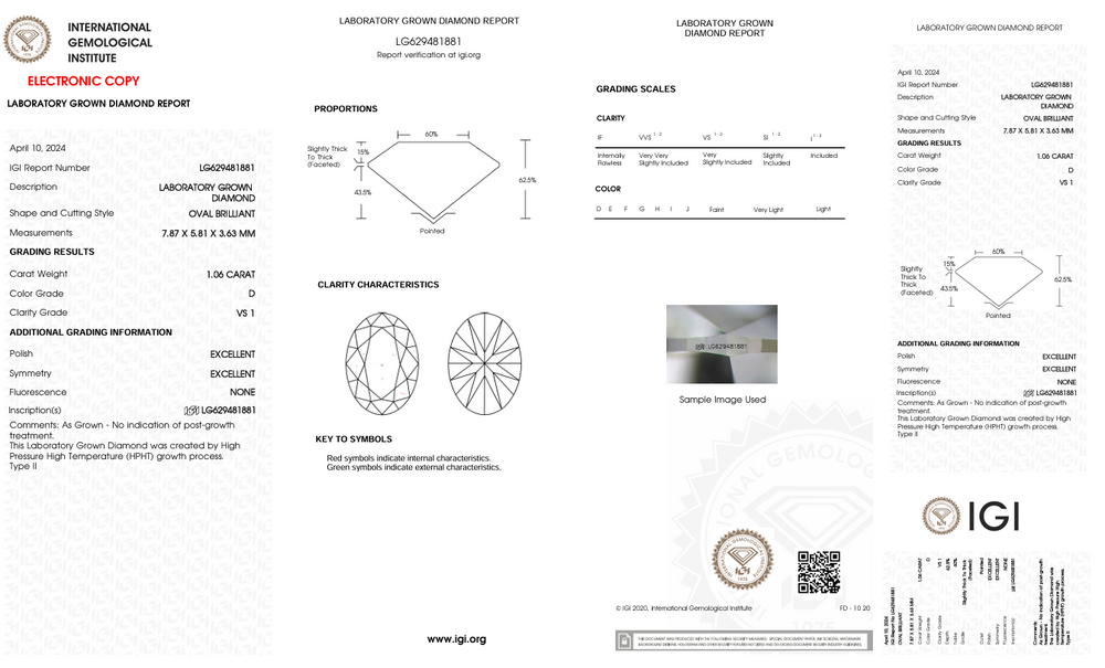 1.06 CT D Renk VS1 Oval Kesim Laboratuar Grubu Elmas - IGI Sertifikalı