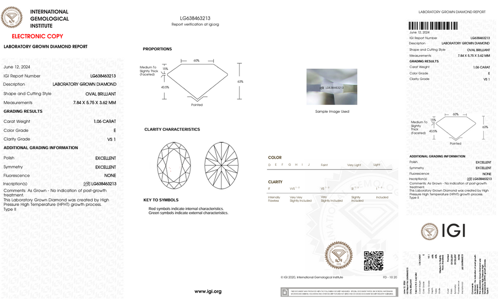 1.06 CT E RENK VS1 Oval Kesim Laboratuar Grubu Elmas - IGI Sertifikalı