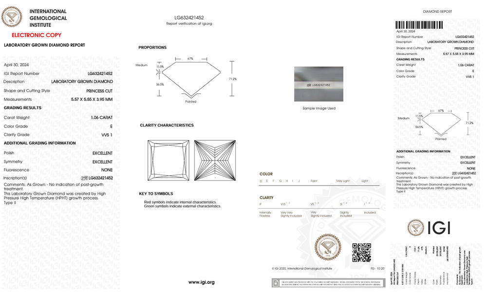 1.06 CT E RENK VVS1 PRINCESS CUT LAB GÜNLÜK Pırlanta - IGI Sertifikalı