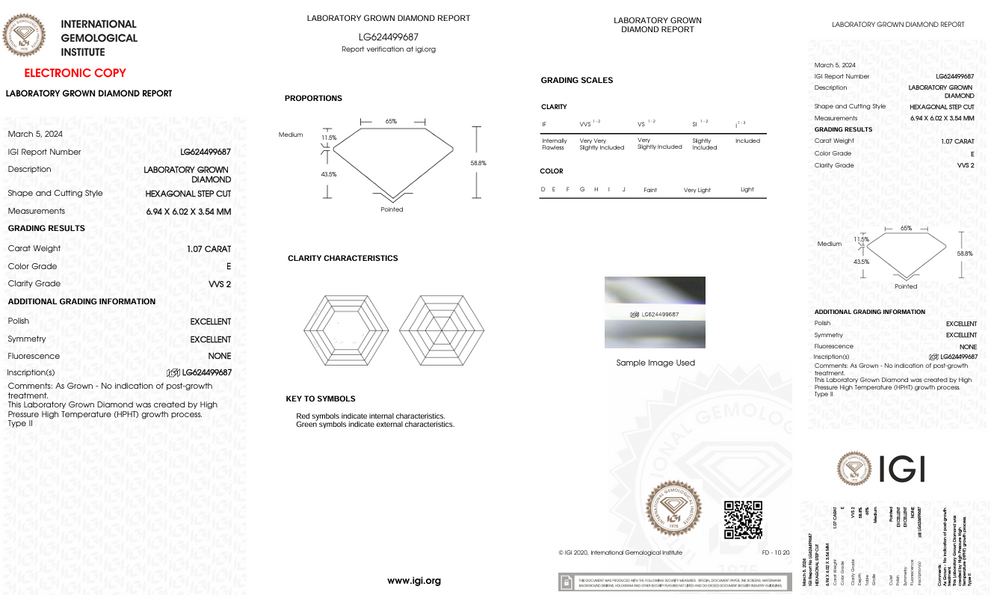 1.07 CT E RENK VVS2 Altıgen Kesim Laboratuar Grubu Elmas - IGI Sertifikalı