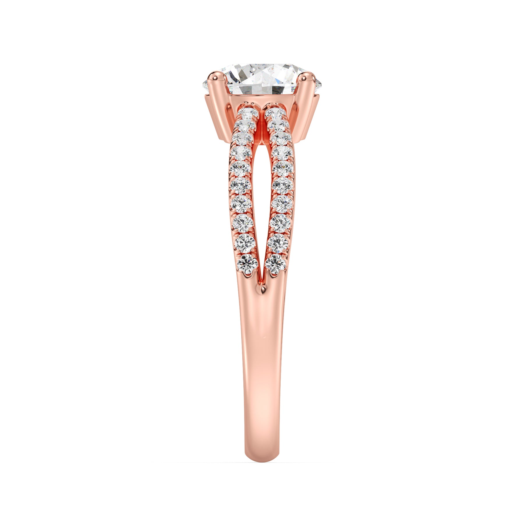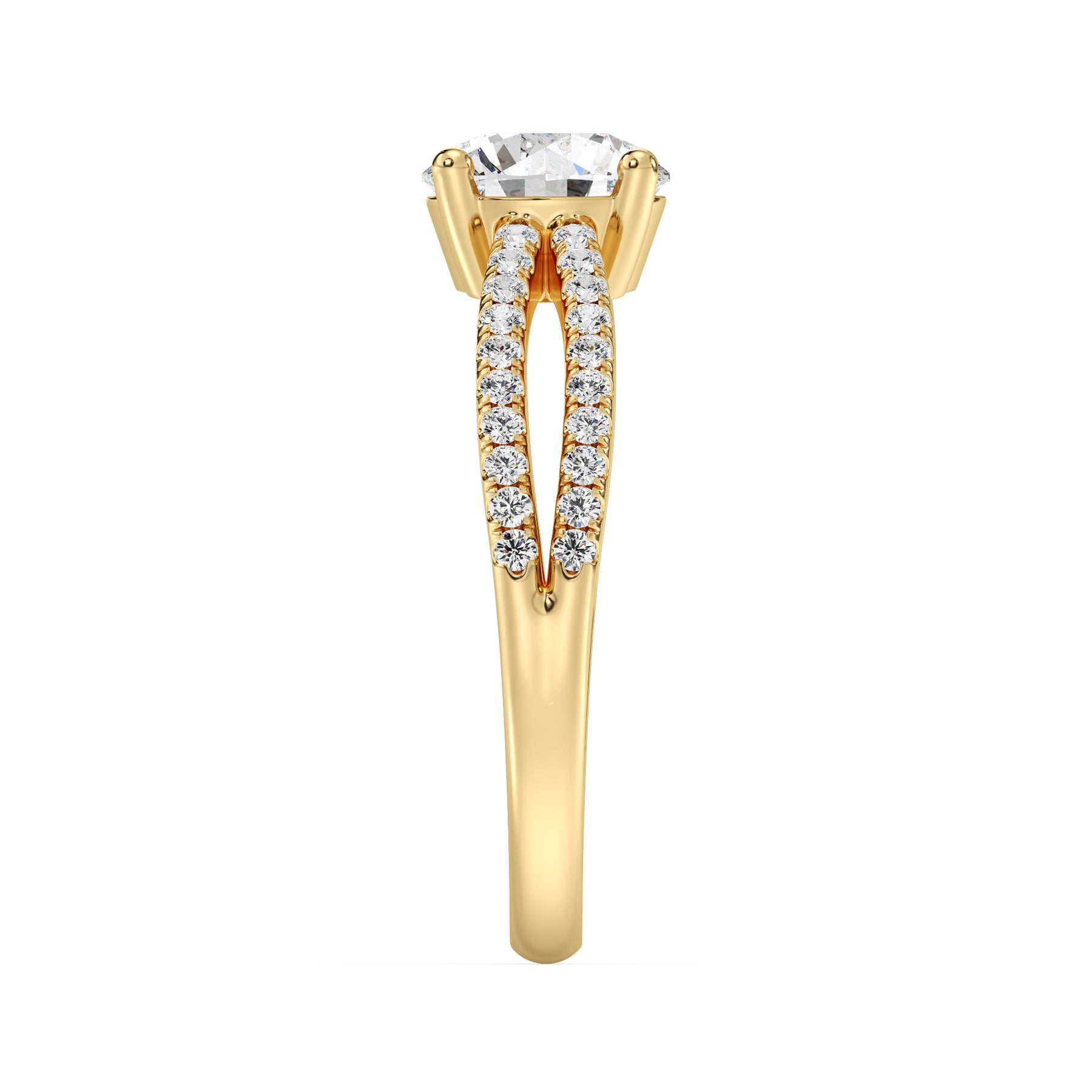 Make a statement with this 1.00ct Round-Cut Lab-Grown Diamond Engagement Ring with Split Shank Pavé Band. Featuring a brilliant 1.00ct IGI-certified round center diamond complemented by 40 SGL-certified pavé-set accent diamonds (0.24ct), this elegant design enhances sparkle and sophistication from every angle. The split shank adds a graceful touch, creating a perfect harmony of modern style and timeless allure. Expertly crafted in your choice of 18K yellow, white, or rose gold, this ring radiates brilliance, beauty, and lasting elegance.