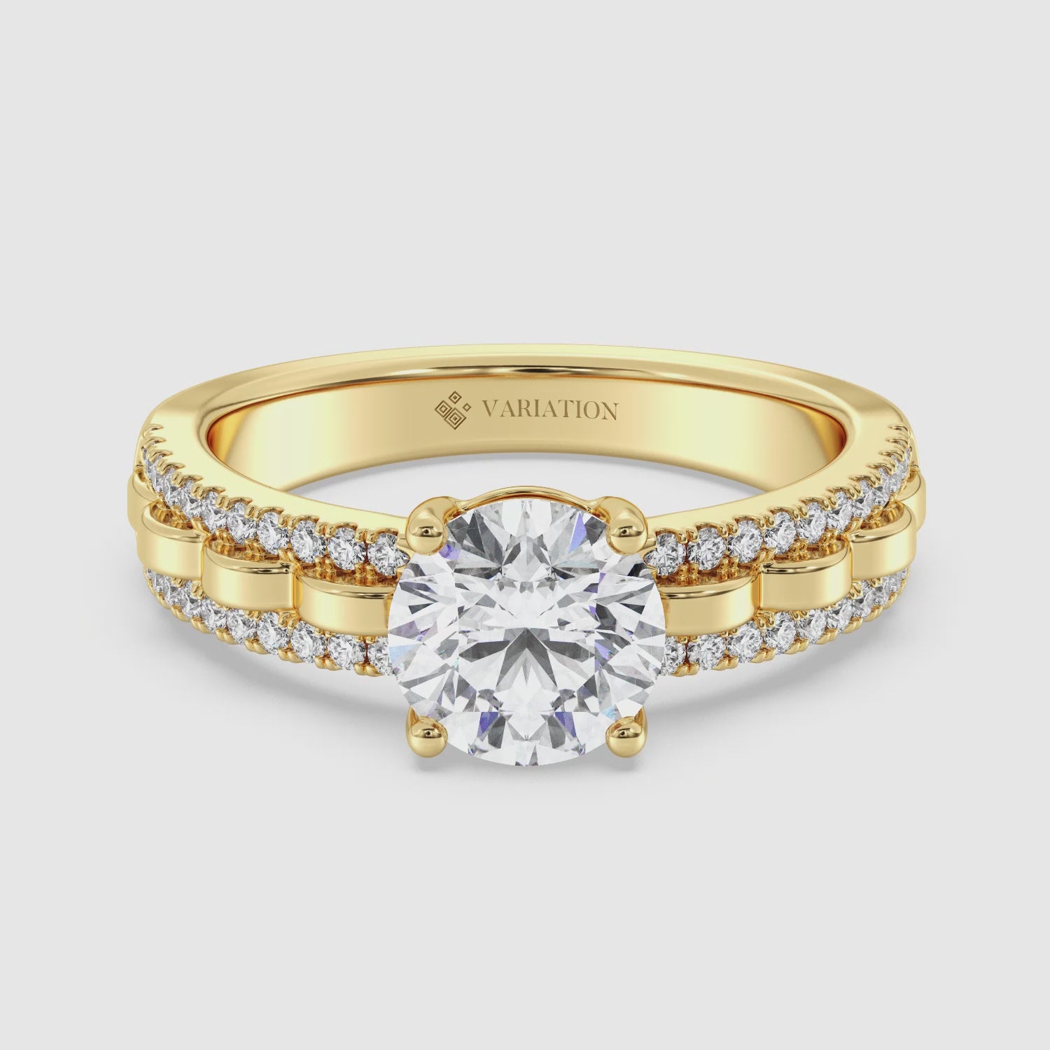 Make a statement with this 1.50ct Round-Cut Lab-Grown Diamond Engagement Ring, featuring a brilliant IGI-certified center diamond complemented by a 2-row diamond shank adorned with 44 pavé-set SGL-certified accent diamonds (0.26ct). The intricate double-row band enhances sparkle and dimension, creating a design that radiates elegance and luxury from every angle. Expertly crafted in solid 18K yellow, white, or rose gold, this ring embodies modern sophistication and enduring love — a perfect symbol of forever.