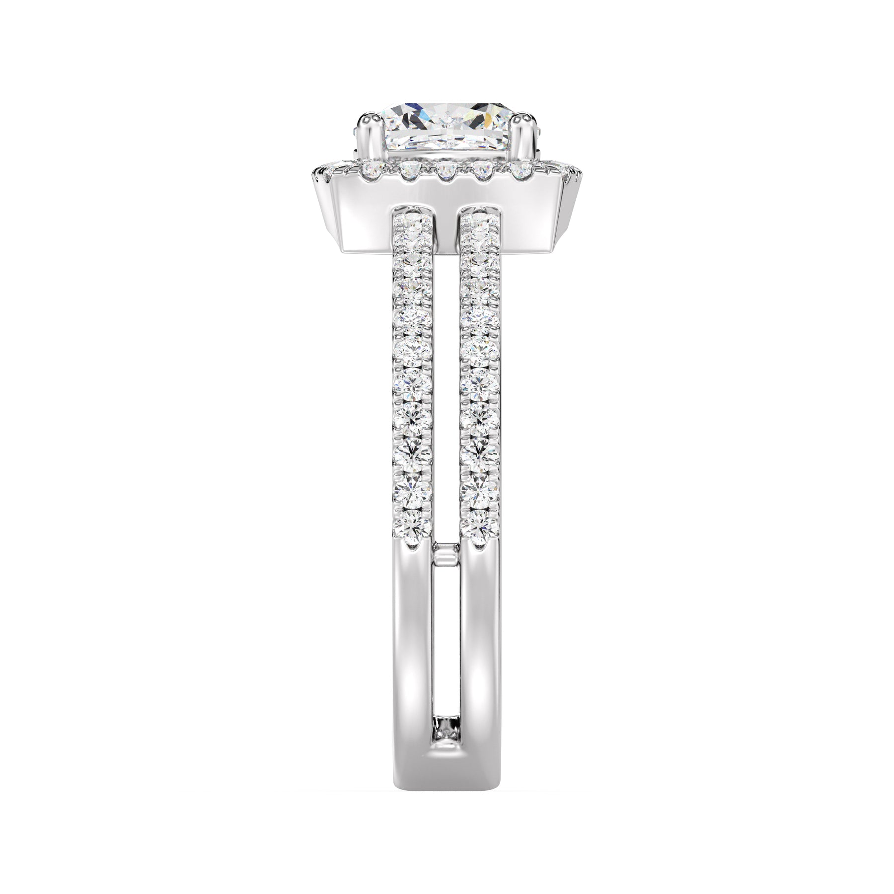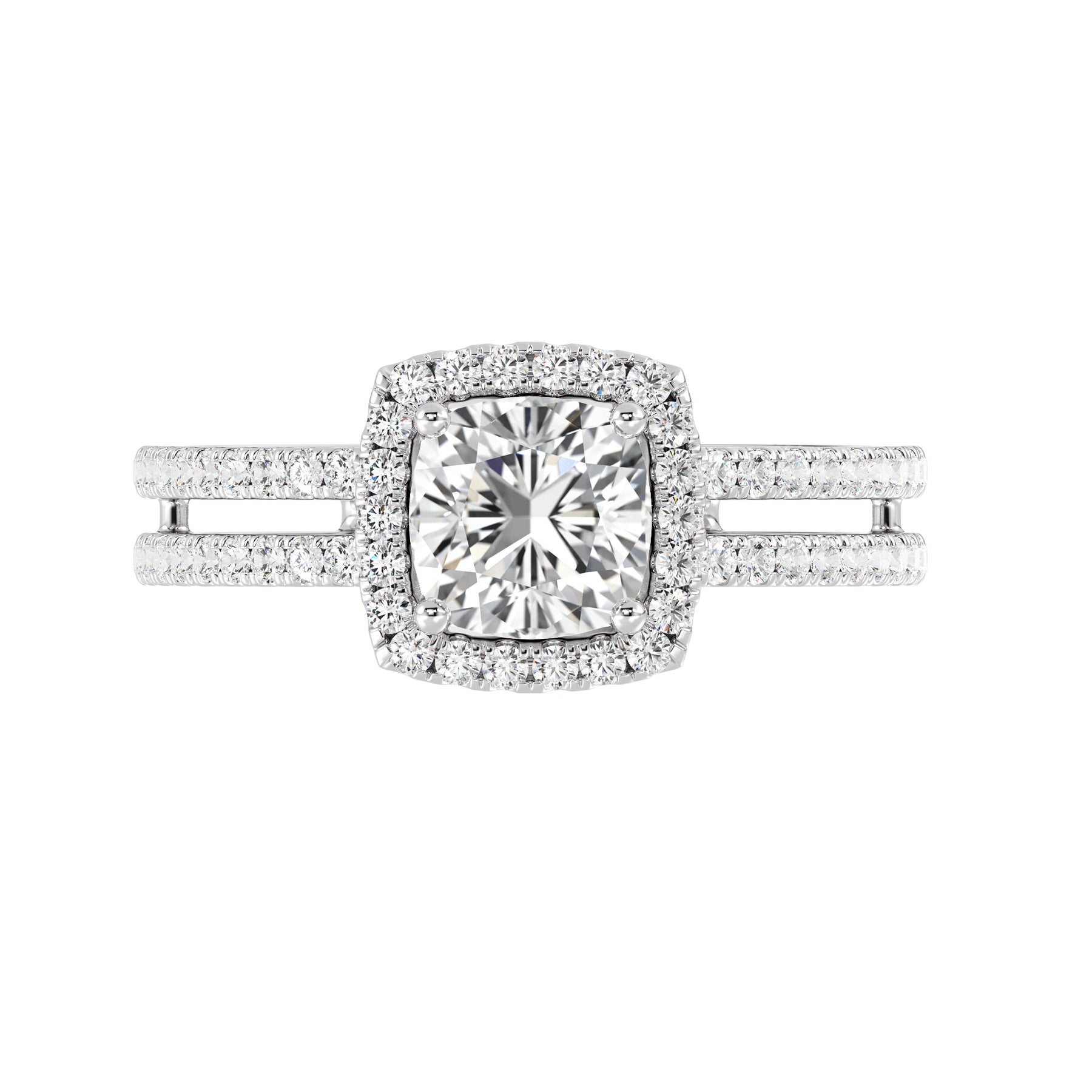 Celebrate everlasting love with this 1.00ct Cushion-Cut Lab-Grown Diamond Halo Engagement Ring with Double Band, a masterpiece of brilliance and modern elegance. The centerpiece — a 1.00ct IGI-certified cushion-cut lab-grown diamond — is encircled by a shimmering halo and complemented by 66 pavé-set SGL-certified accent diamonds (0.40ct) that extend gracefully along the double band. Together, they create a radiant, multidimensional sparkle that captivates from every angle.